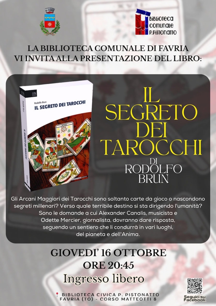 16 ottobre Rodolfo Brun 11 Ottobre 2025/in Eventi, Eventi - Il segreto dei tarocchi /da Rosanna CaraciA Favria, nella biblioteca comunale. Presentazione del “Segreto dei Tarocchi”, il romanzo carico di suspense e mistero di Rodolfo Brun. https://www.impremix.it/wp-content/uploads/2025/10/94d8bbe4-5784-4f36-937e-6cbe75de61c9.jpg 1183 836 Rosanna Caraci https://www.impremix.it/wp-content/uploads/2025/01/edizioni_header.png Rosanna Caraci2025-10-11 21:20:472025-10-20 16:06:1616 ottobre Rodolfo Brun