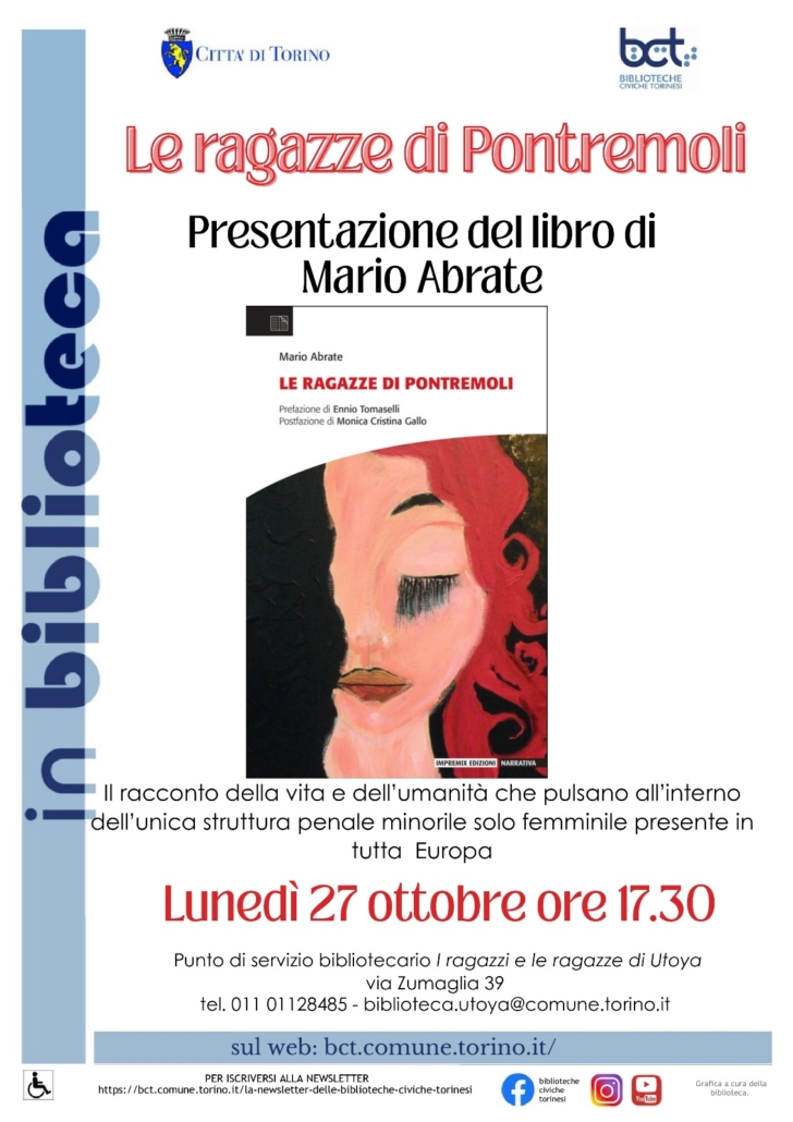 Alla biblioteca di via Zumaglia 39 a Torino viene presentato il libro di Mario Abrate “Le ragazze di Pontremoli”. Un incontro che darà spunti di riflessioni sulla restrizione minorile e sulle possibilità di recupero, per una nuova vita. Sarà presente l’autore.